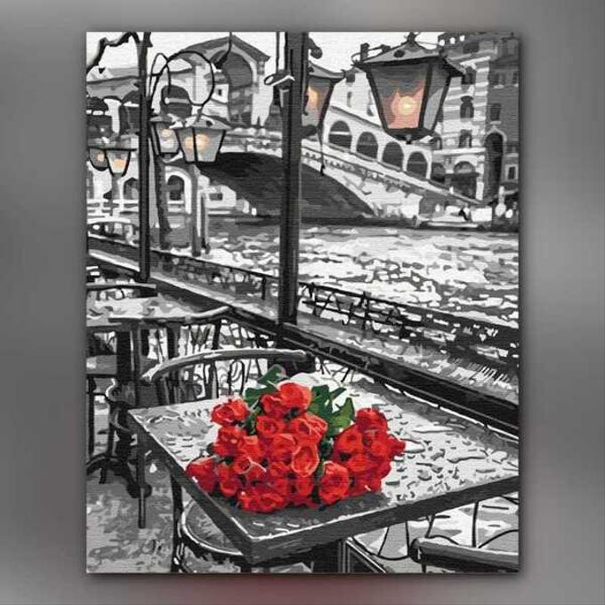 أدوات رسم لوحة ورود تحت المطر